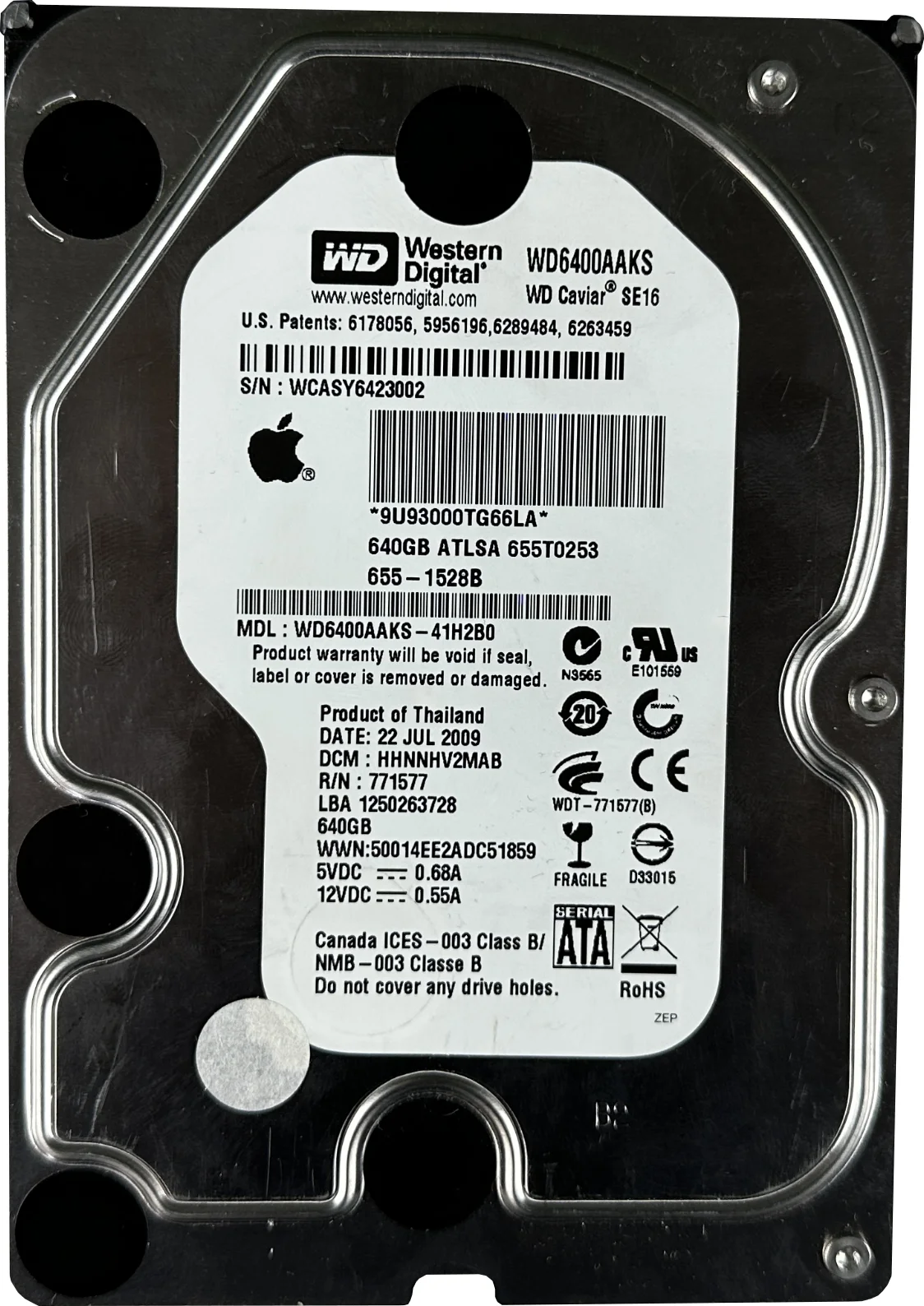 Oferowany dysk posiada model WD6400AAKS – może jednak pochodzić od różnych dystrybutorów (np. Western Digital, Apple lub inne OEM). Różnice dotyczą jedynie oznaczeń / etykiety i nie wpływają na