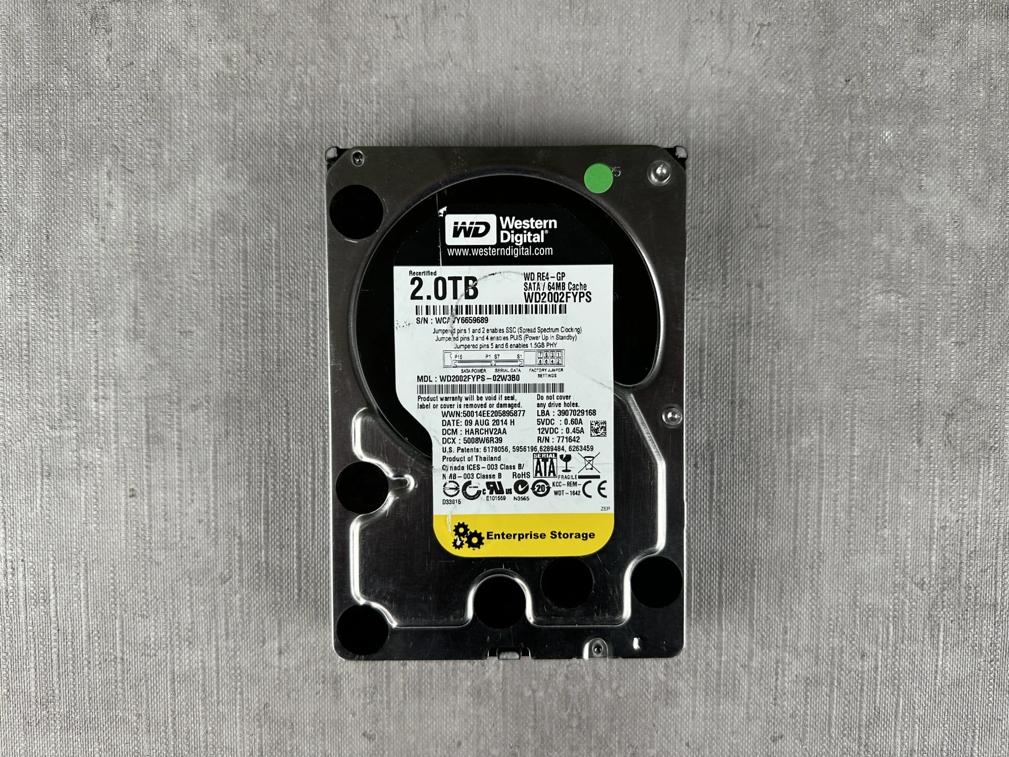 WD2002FYPS je disk triedy enterprise (RE4-GP) navrhnutý na prevádzku 24/7 v serveroch a RAID, nie pre bežný domáci PC.