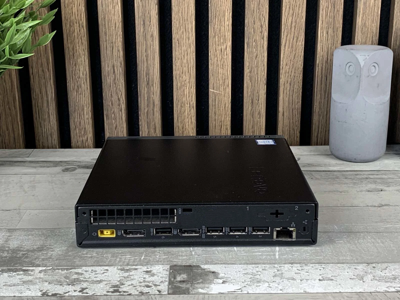 - Porty: 2× USB 3.1 Gen 1 (przód), combo audio 3,5 mm (przód), 4× USB 3.1 Gen 1 (tył), 2× DisplayPort 1.2, RJ-45, zasilanie