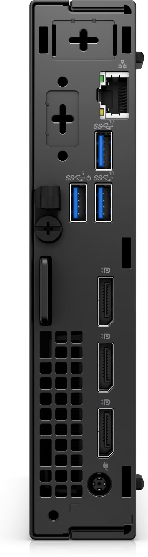 - Porty 1× HDMI 1.4b, 1× DisplayPort 1.4, 1× USB-C 3.2 Gen 2, 3× USB-A 3.2 Gen 1, 2× USB-A 2.0, 1× RJ-45, 1× audio combo jack (3.5 mm), 1× zasilanie (DC-in)